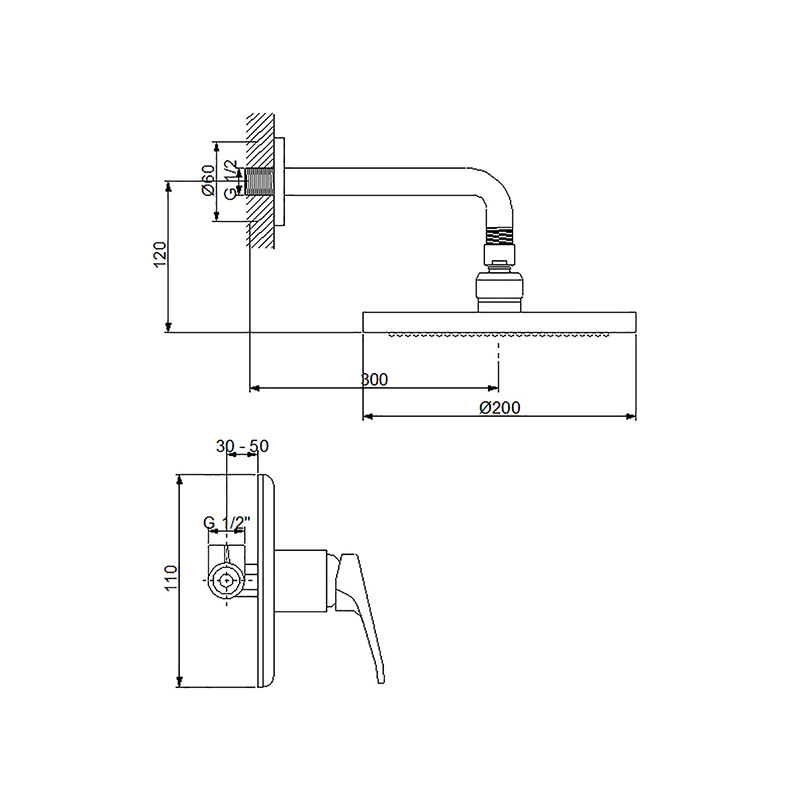 Baterija sa uzidnim tušem i ružom Smart