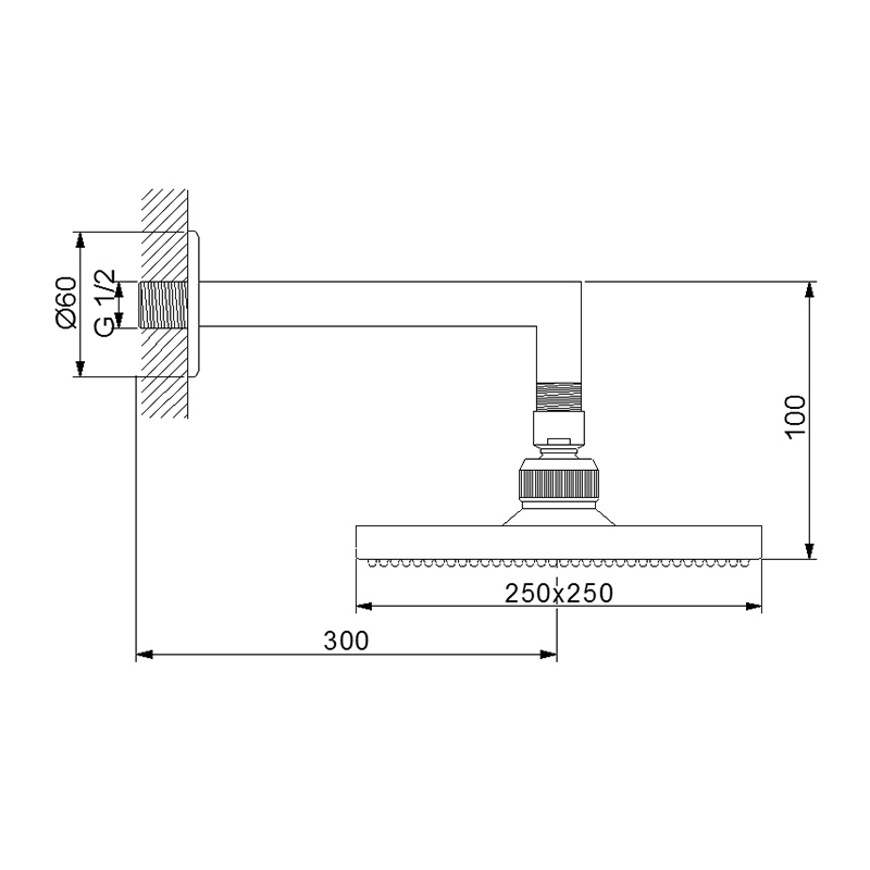 Tus ruza zidna kvadratna 250mm NEWARC - BLACK [470531B]