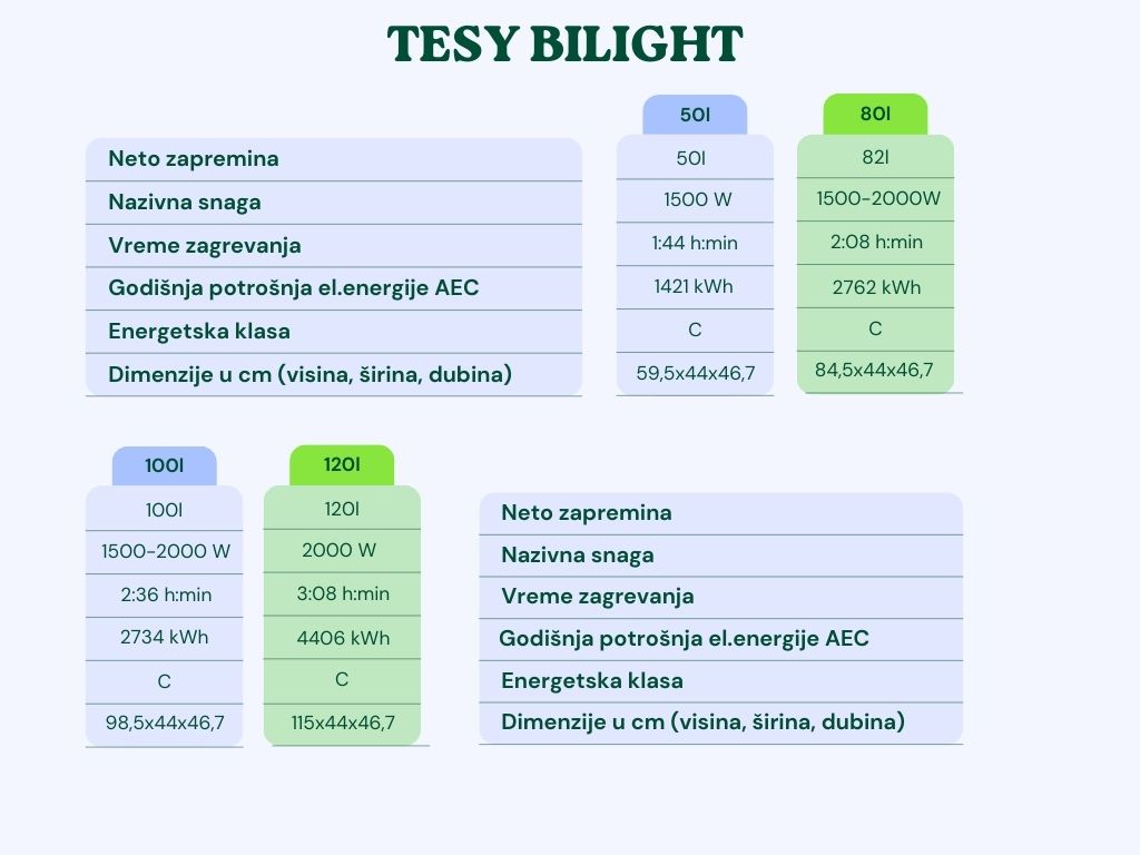 Bojleri serije BiLight razrađeni su u skladu sa najvišim evropskim standardima bezbednosti i kvaliteta. Lepeza proizvoda raspolaže modelima zapremine od 50 do 150 litara.