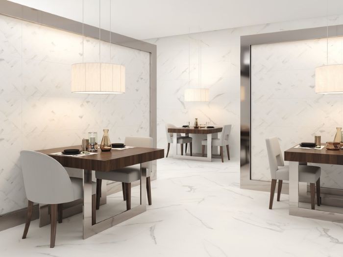 Imitacija prirodnog mermera je popularan izbor za unutrašnje i spoljašnje oblaganje površina. Ove pločice nude estetsku privlačnost i eleganciju mermera, ali su praktične i lakše za održavanje.
