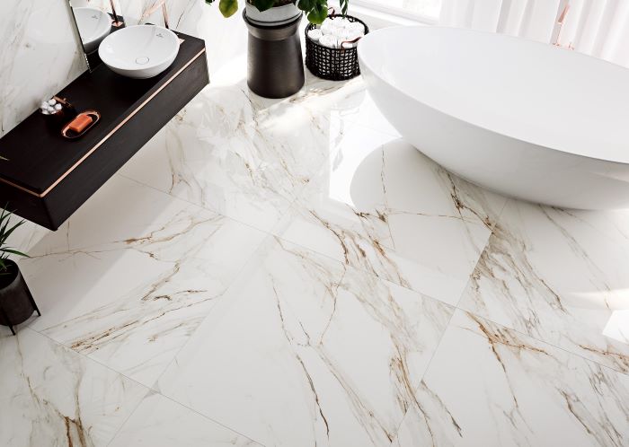Pločica CORINTO sa mat završnom obradom i šarama mermera doprinosi sofisticiranom i elegantnom izgledu prostorije, stvarajući iluziju svetlosti i prostranosti.