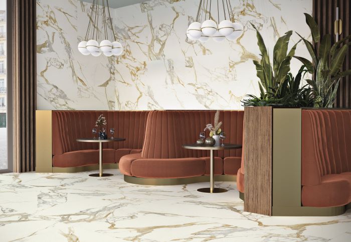 Ove pločice su inspirisane belim prirodnim mermerom i sadrže bele nijanse  koje oponašaju teksturu i šare belog mermera, sa dodatkom zlatnih detalja ili žila koje daju luksuzan izgled.