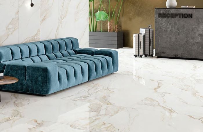 Pločice koje imitiraju prirodni beli mermer dizajnirane tako da vizuelno podsećaju na izgled belog mermera. Ove pločice pružaju elegantan i luksuzan izgled prostoru,  ali su lakše za održavanje jer ne zahtevaju posebne tretmane poput redovnog poliranja.