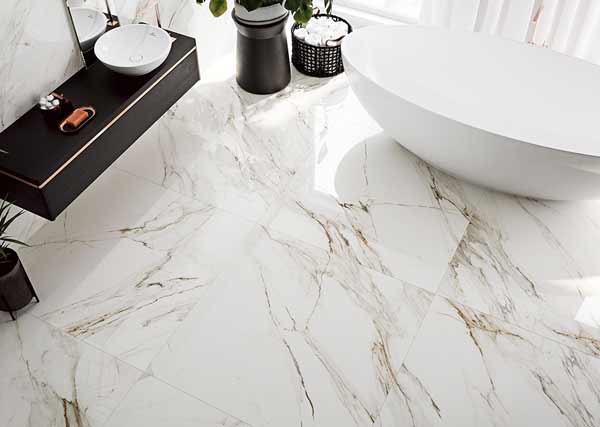 Pločica CORINTO sa mat završnom obradom i šarama mermera doprinosi sofisticiranom i elegantnom izgledu prostorije, stvarajući iluziju svetlosti i prostranosti.