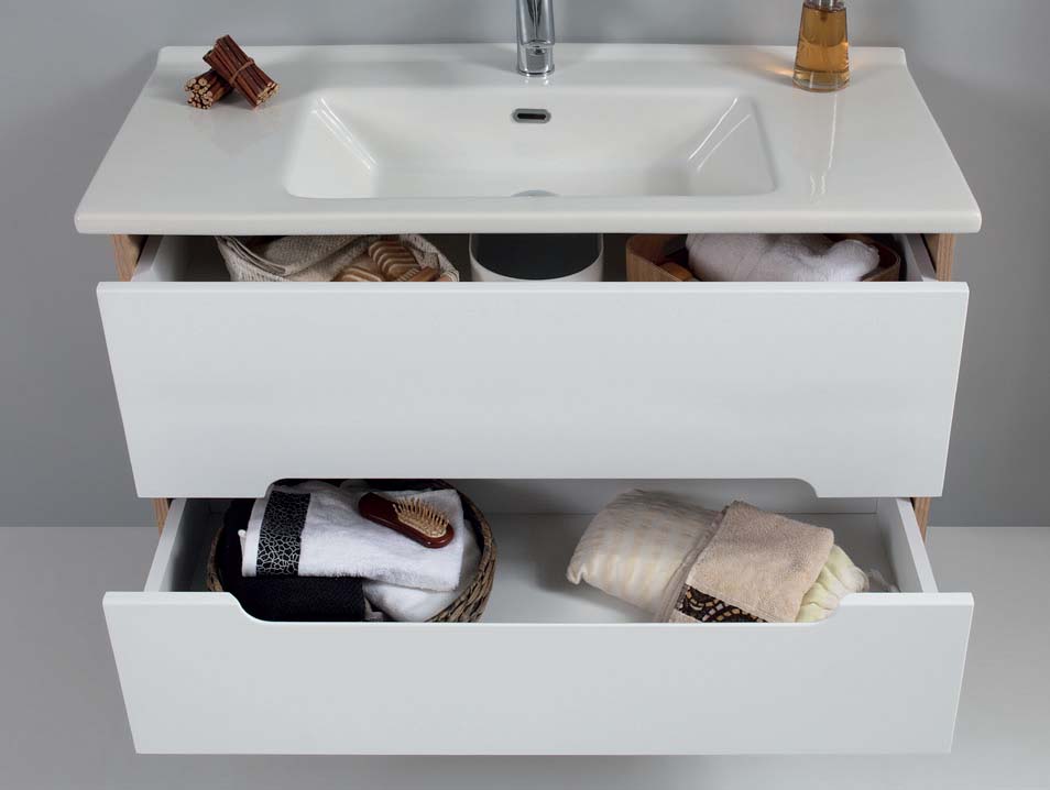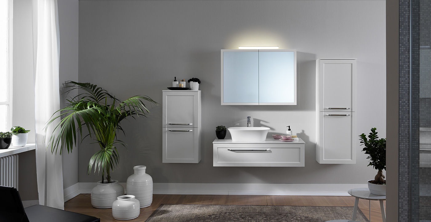 Kupatilski nameštaj u beloj boji odiše čistoćom, jednostavnošću i praktičnošću. Beli elementi su univerzalni i uklapaju se u svako kupatilo. Veoma je jednostavan za kombinovanje sa pločicama, jedino treba izbegavati kombinovanje sa belim zidovima i pločicama.