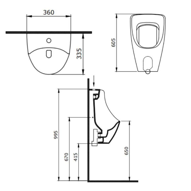 Ključne karaktreristike Arch pisoara su skriveni odvod i dovod odozgo. Time se omogućava čist, minimalistički izgled bez vidljivih cevi, što doprinosi urednosti i esteteci prostora. Skriveni odvod omogućava efikasno ispiranje i sprečava zadržavanje neprijatnih mirisa.
