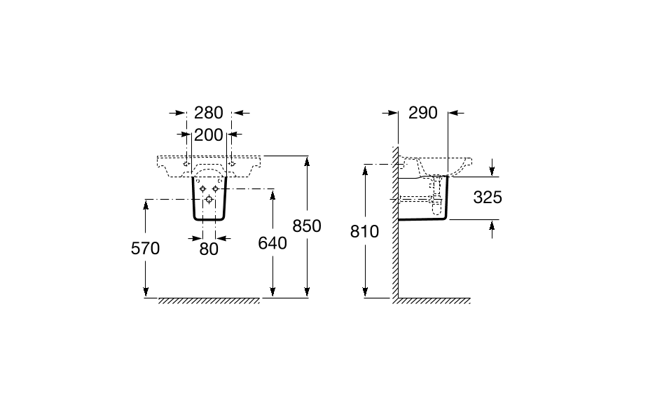 Polustub DEBBA izrađen je od keramike i omogućava sakrivanje instalacija isood umivaonika.