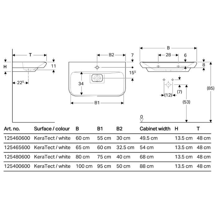 Umivaonik myDay bez otvora za preliv može biti kombinovan sa Geberit Clou sifonom i sistemom za preliv. Takođe pruža mogućnost ugradnje sa ormarićem za umivaonik.