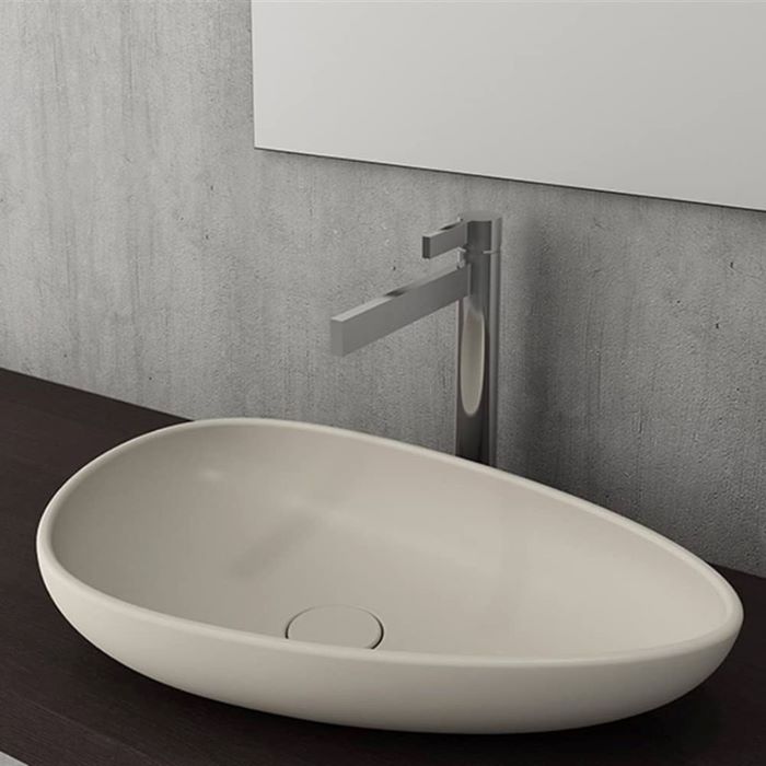 Dodajte luksuz i sofisticiranost svom kupatilu uz umetnički umivaonik Etna. Izrađen je od visokokvalitetne sanitarne keramike i dolazi u prelepoj boji jasmin koja unosi svežinu i eleganciju u svaki prostor. Njegova mat završna obrada pruža moderni i rafinirani izgled, dok istovremeno sprečava nastanak otisaka prstiju i mrlja, što olakšava održavanje.