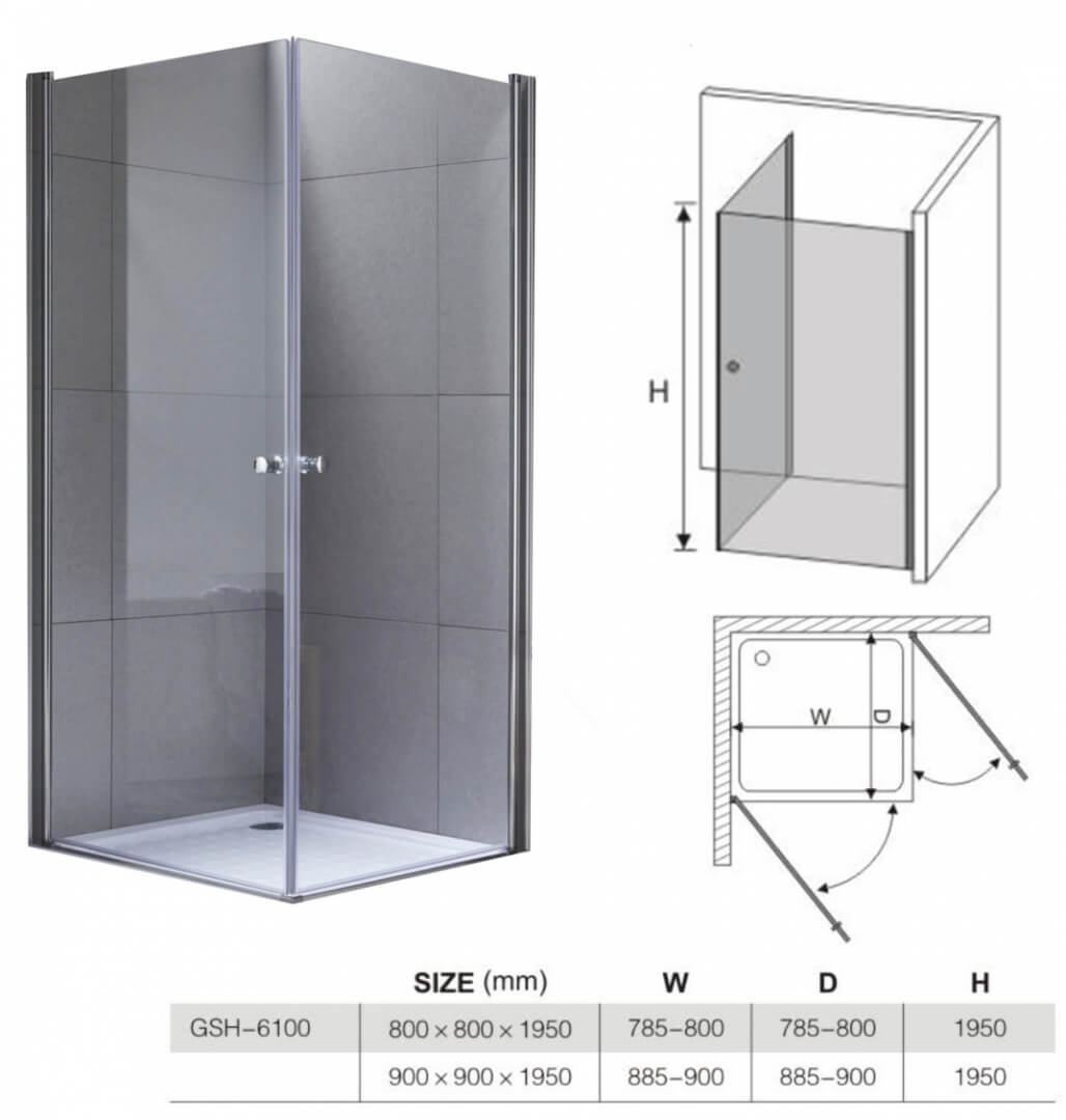 Tus paravan GSH6100 90x90 pivot vrata - ENJOY 8mm nano glass