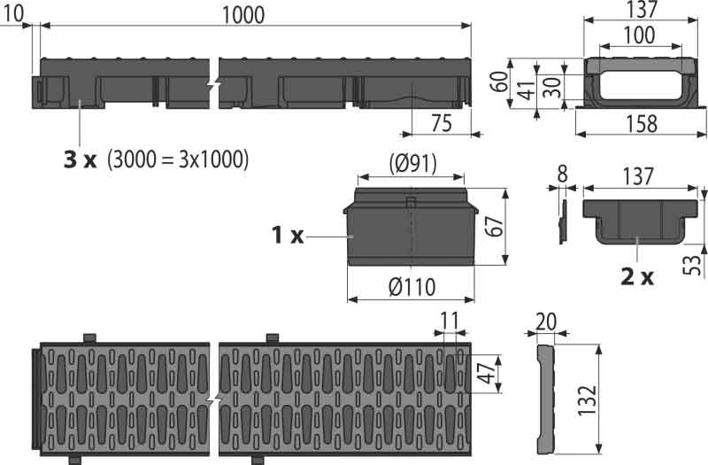 Prečnik odvodne cevi110 mmUkupna visina instalacije60 mm