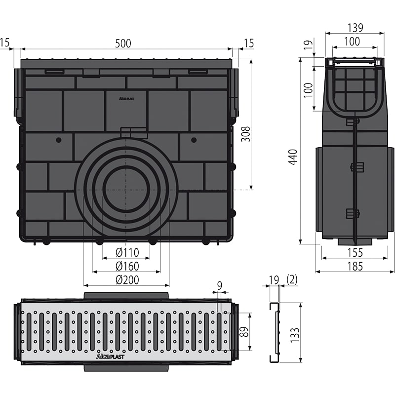 Pocinkovana mreža sa „C“ profilom - pričvršćena za odvod pomoću dve plastične brave, širina ulaznog proreza 9 mm
