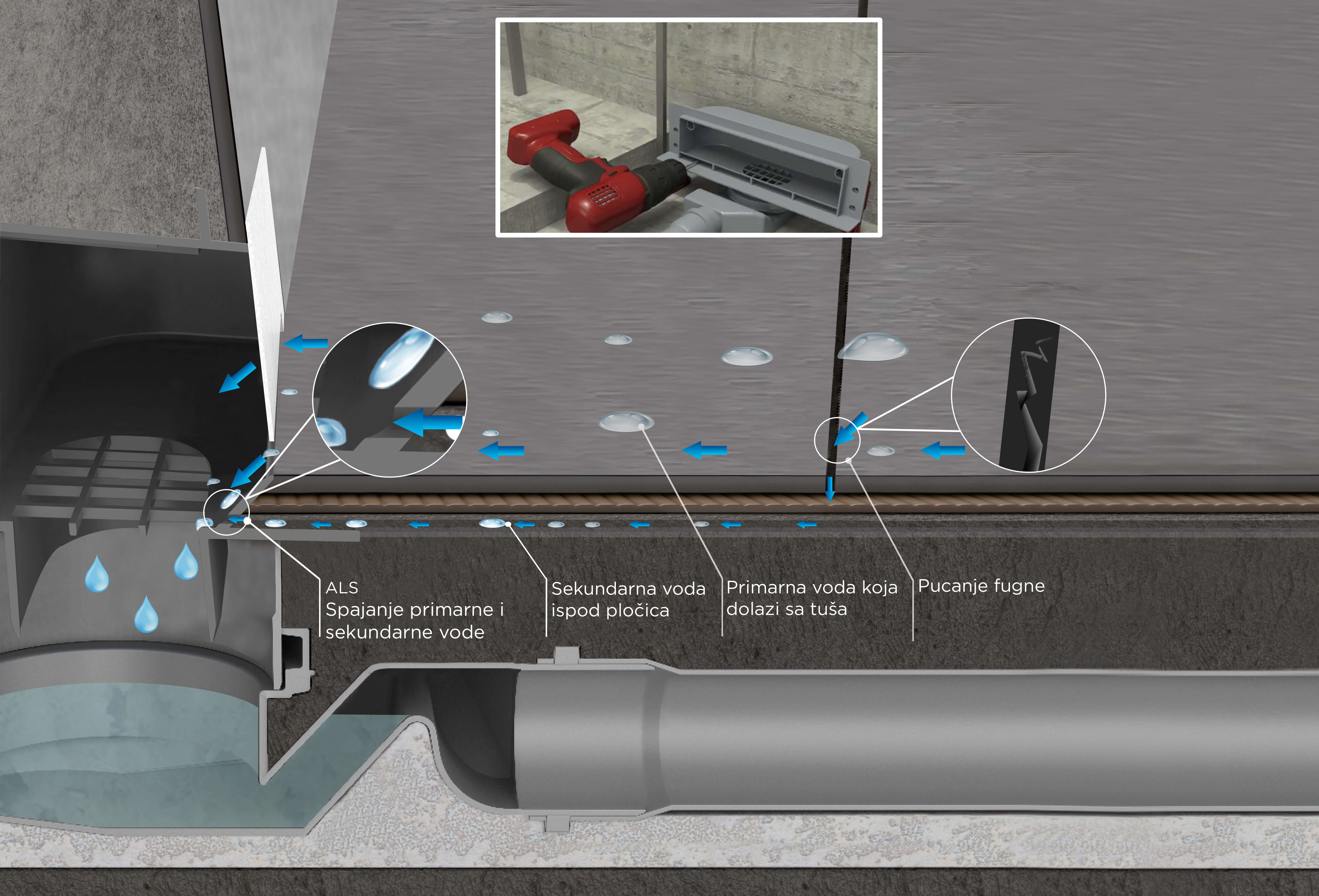 pozicioniranja slivnika na zid umesto u pod daje vašem kupatilu veliki broj