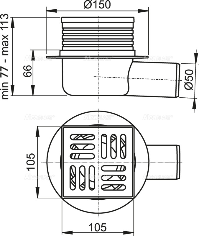 Pvc slivnik f50 horizontalni, 10x10, mokri sifon ALCA [APV26]