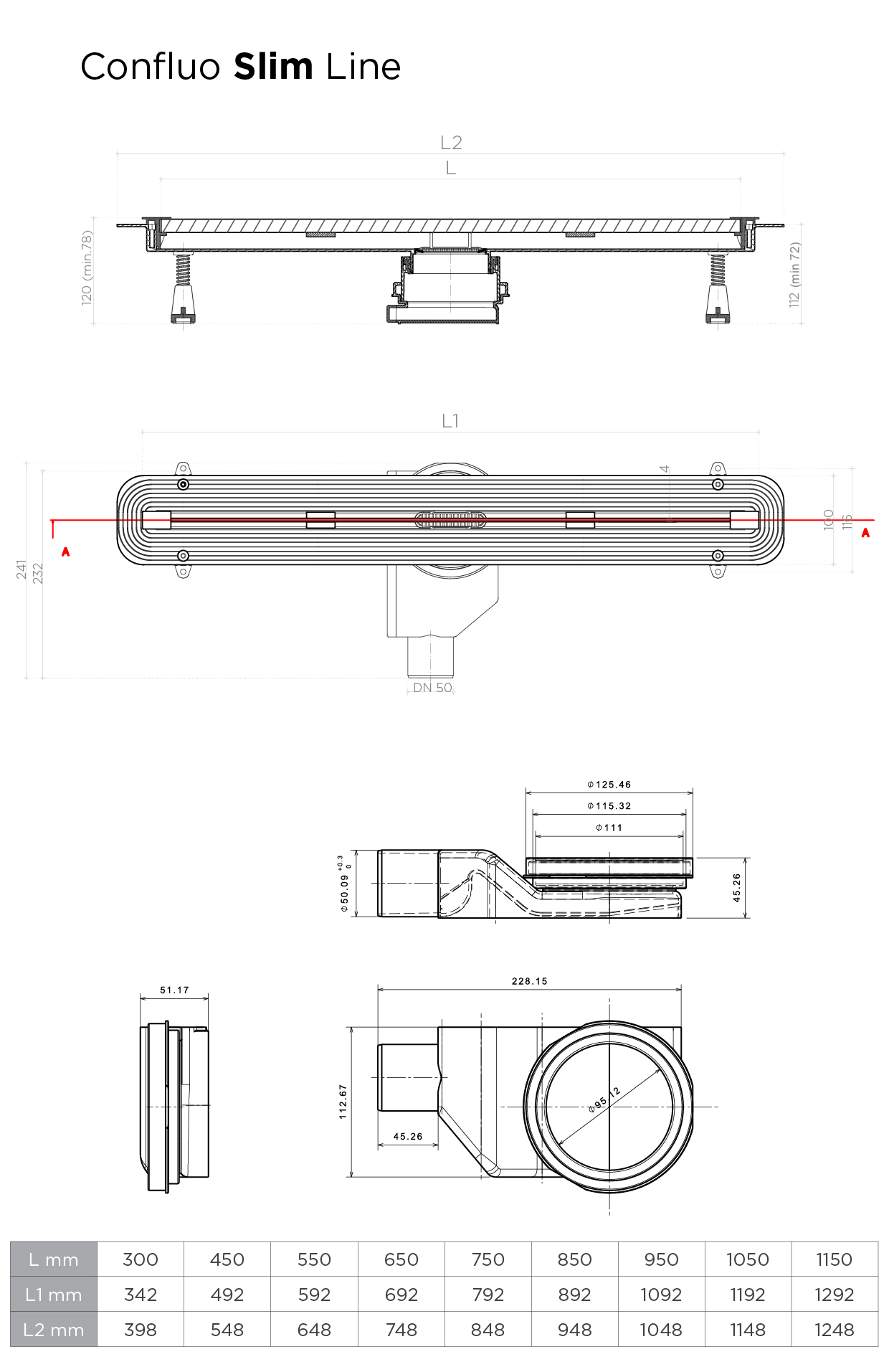 Pvc slivnik CONFLUO PREMIUM "SLIM LINE 850" (131.00035)