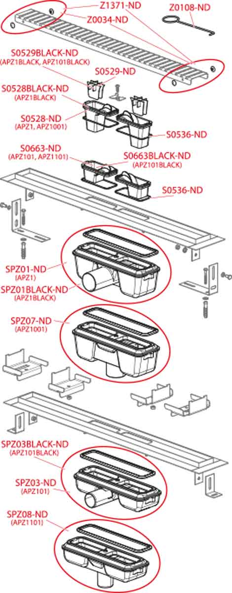 • Materijal tuš kanalice: nerđajući čelik 2 mm, AISI 304, DIN 1.4301, EN1253-1