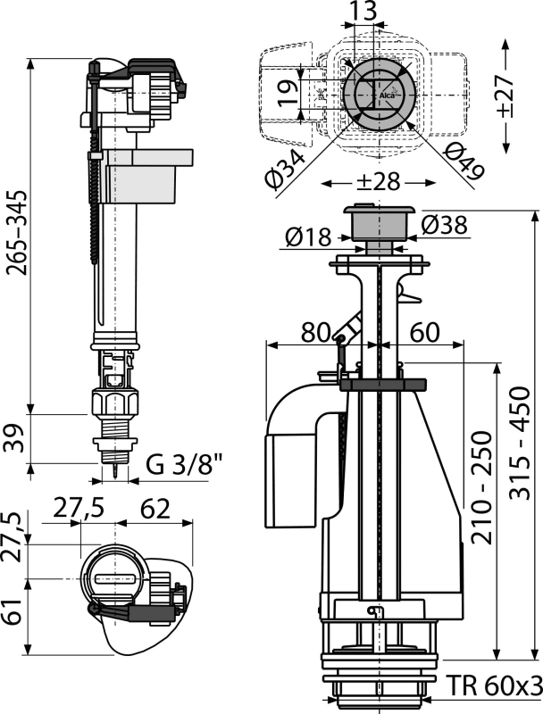 • Dizajn omogućava optimalno podešavanje visine ventila prema visini vodokotlića
