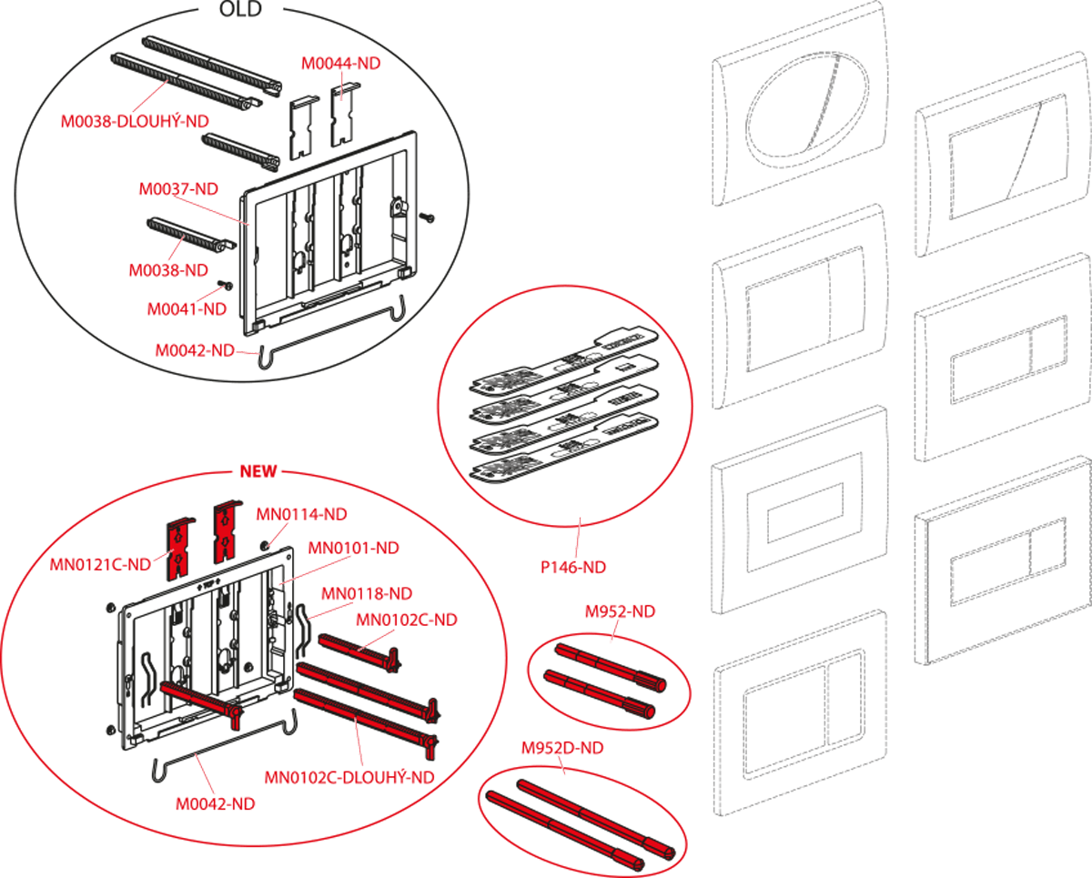 • Pričvrsni okvir tipke za ispiranje